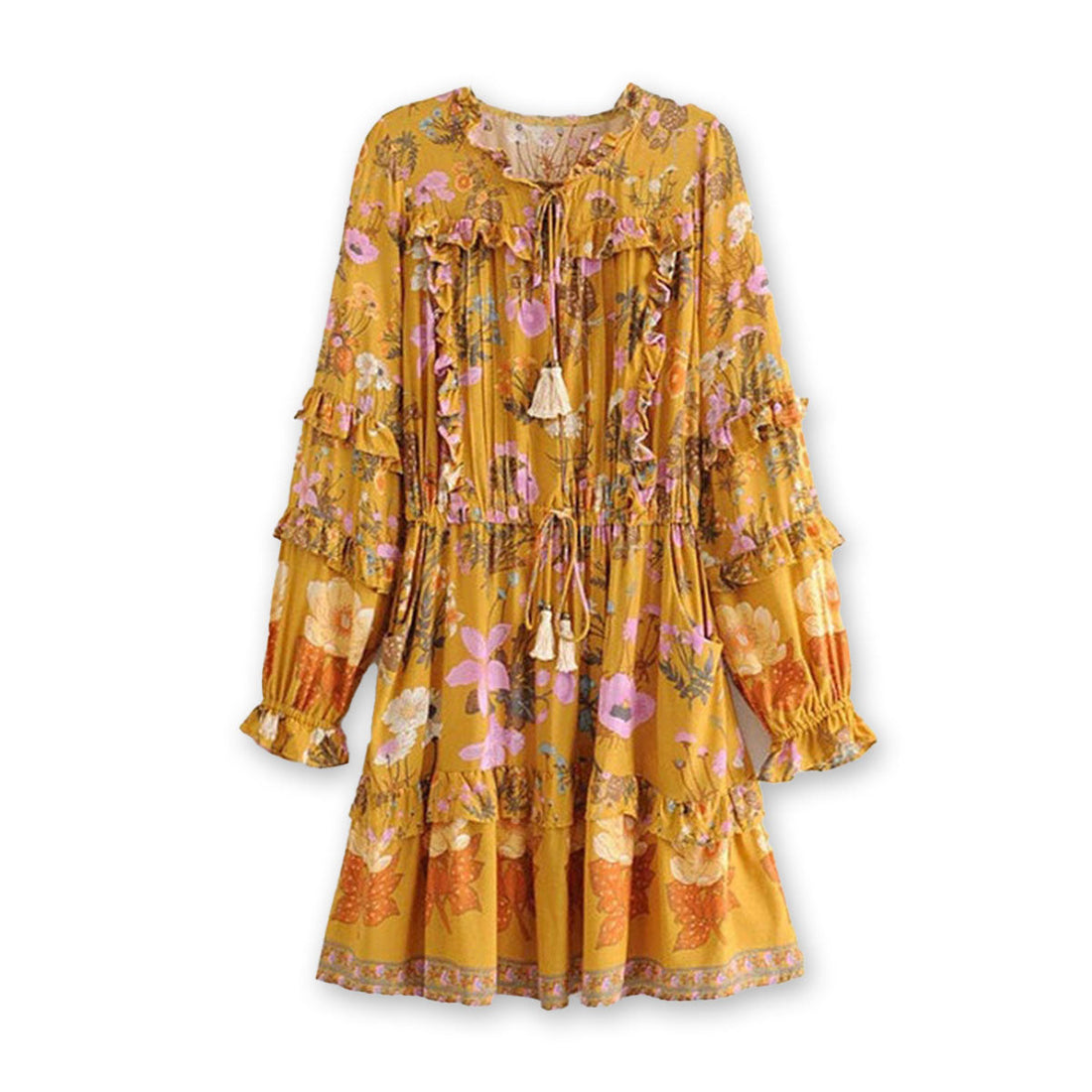 Golden Hour Boho Floral Print Long Sleeve Mini Dress