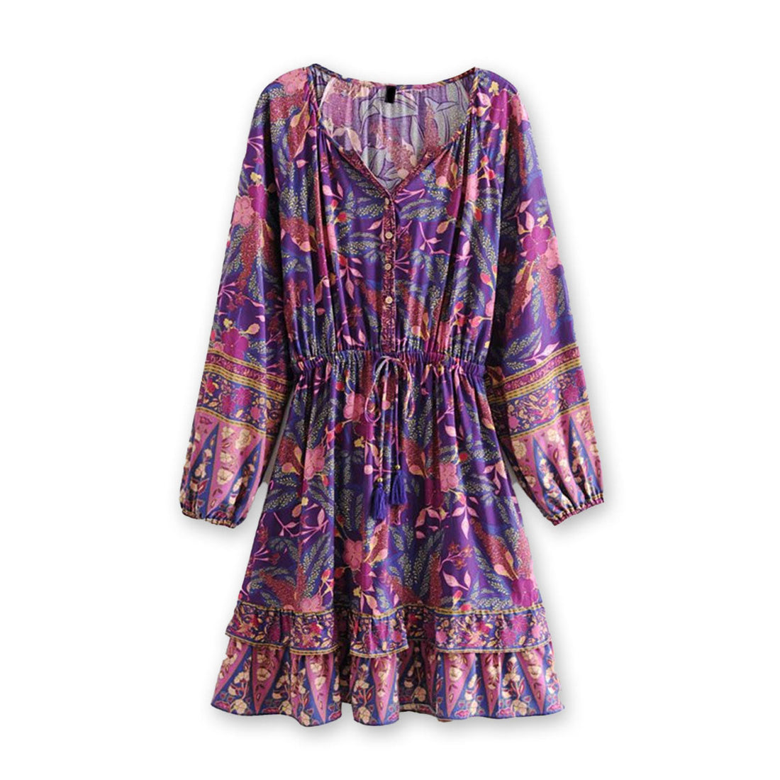Purple Wisteria Boho Floral Print Long Sleeve Mini Dress