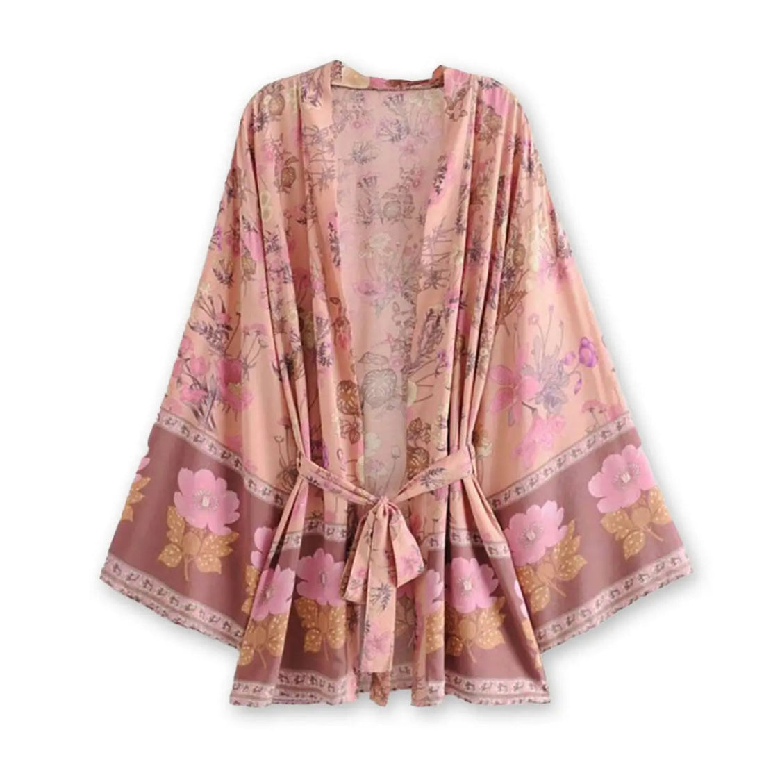 Fuchsia Bloom Floral Print Velvet Burnout Kimono