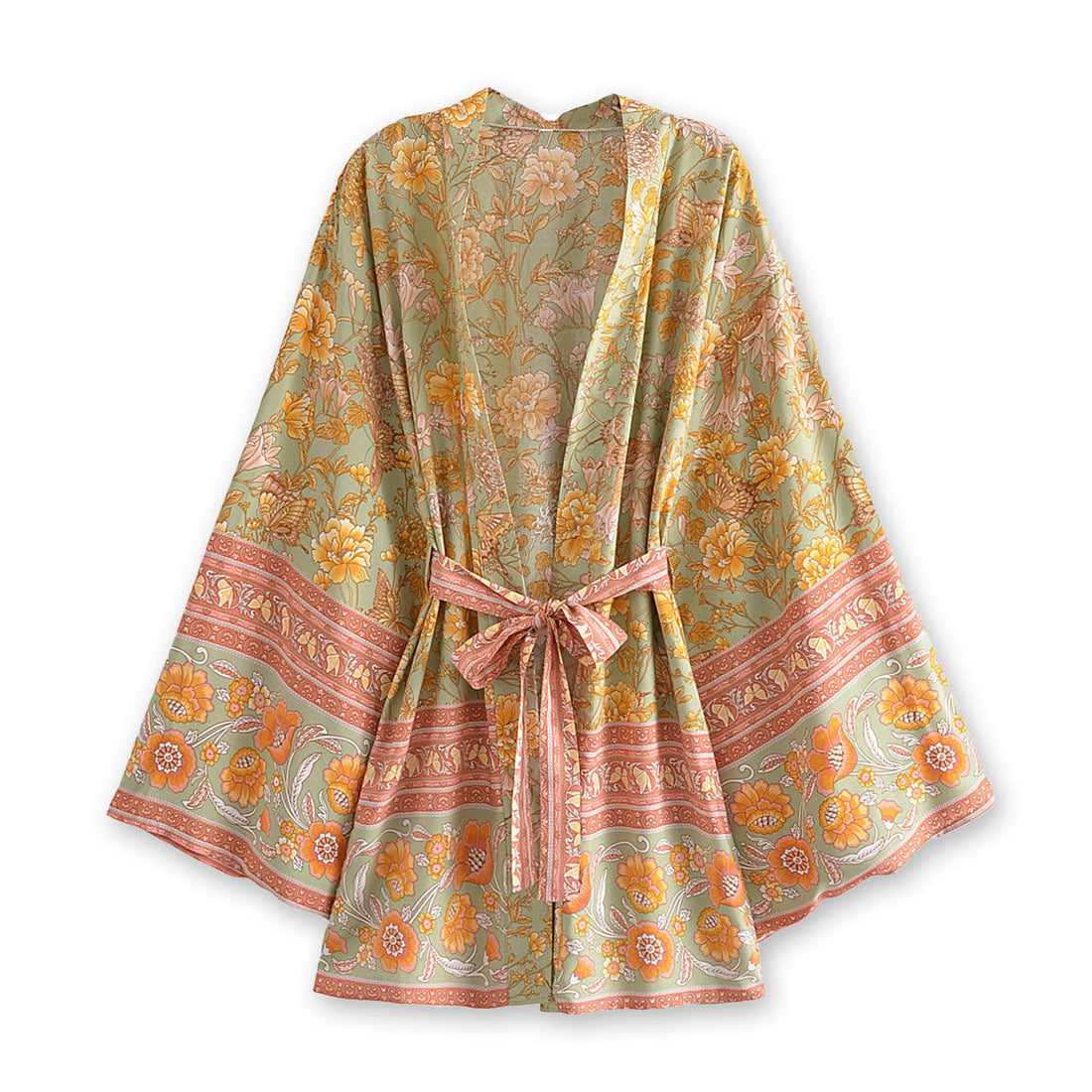 Mystic Green Butterfly Boho Floral Print Short Robe
