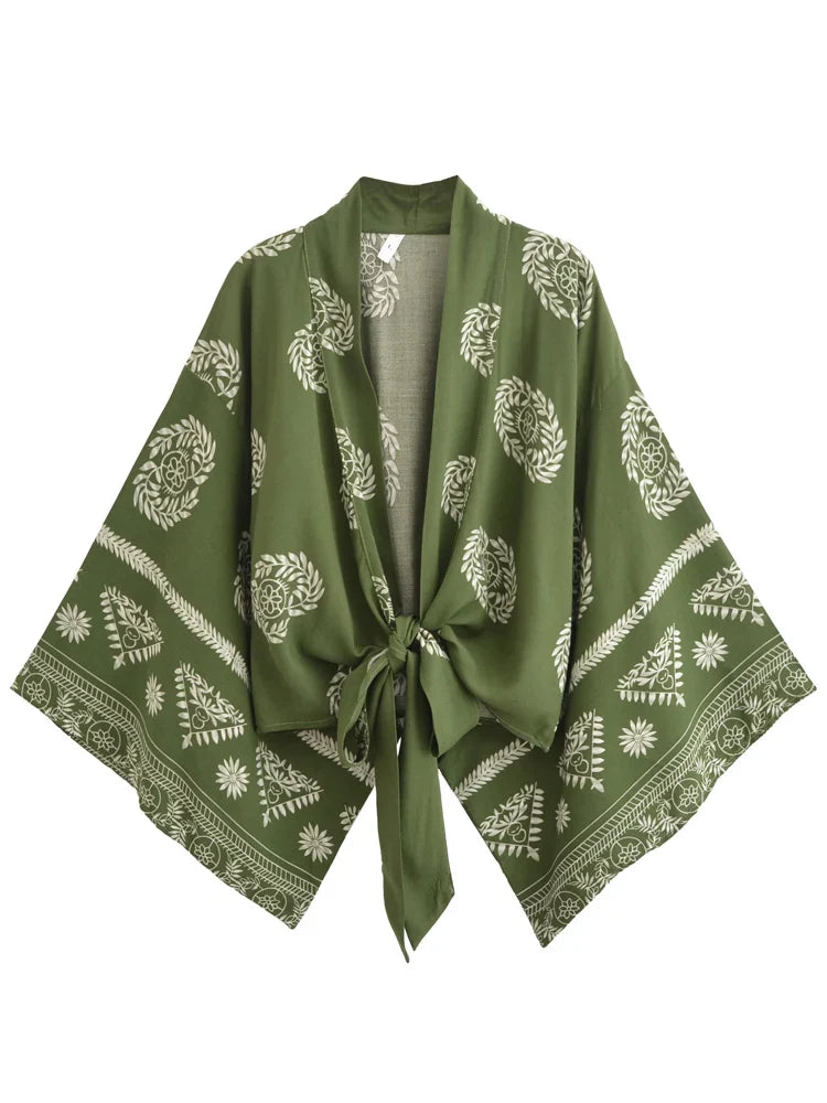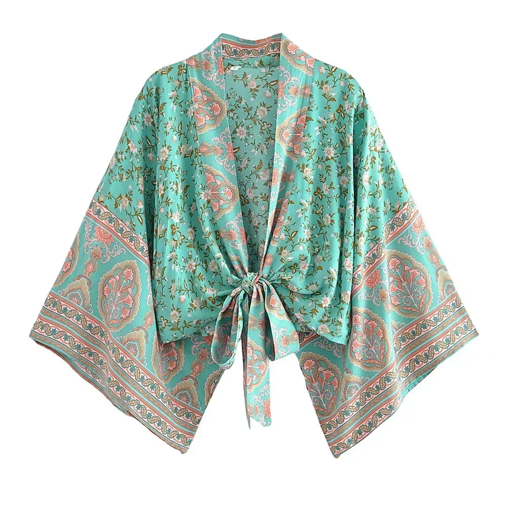 Green Dreamer Boho Floral Print Crop Top