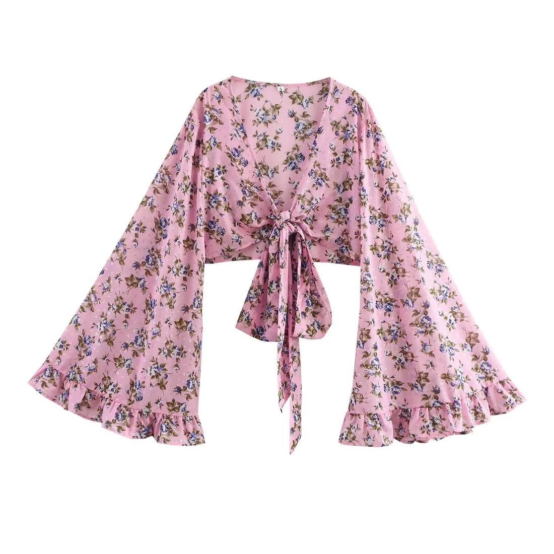 Soft Petals Boho Floral Print Long Sleeve Crop Top