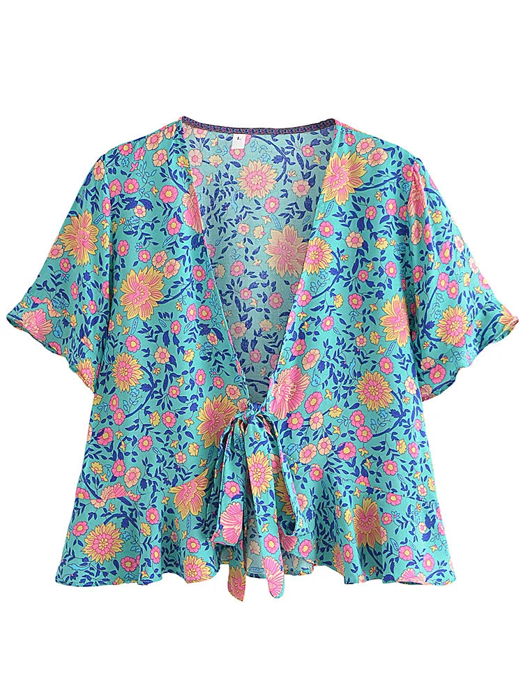 Aquarose Bloom Boho Floral Print Crop Top