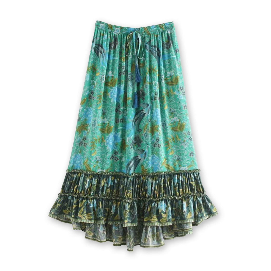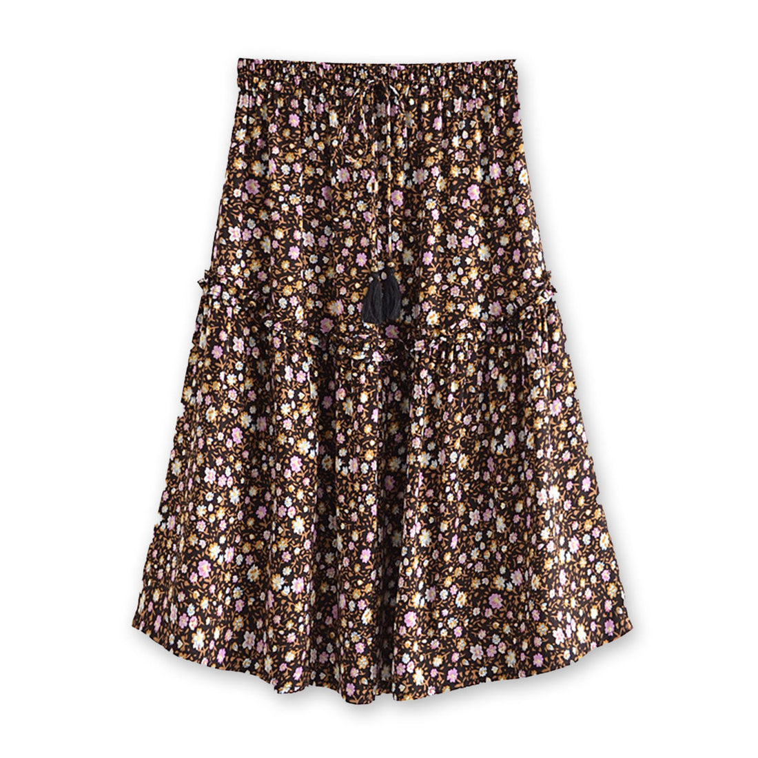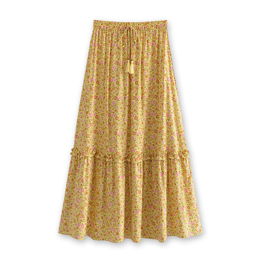 Seaside Blossom Boho Floral Print Maxi Skirt