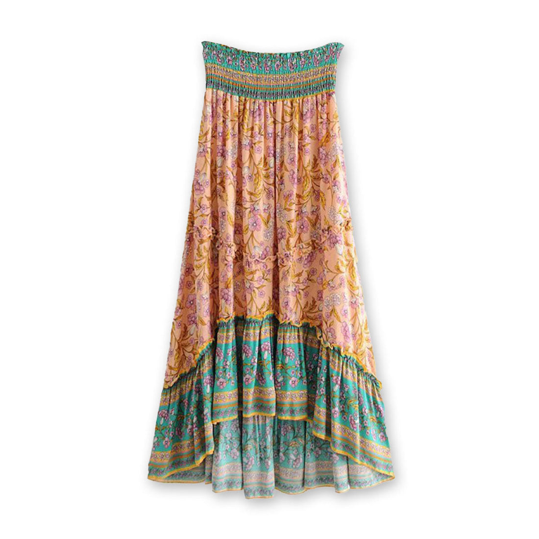 Fantasy Rose Boho Floral Print High-Low Maxi Skirt