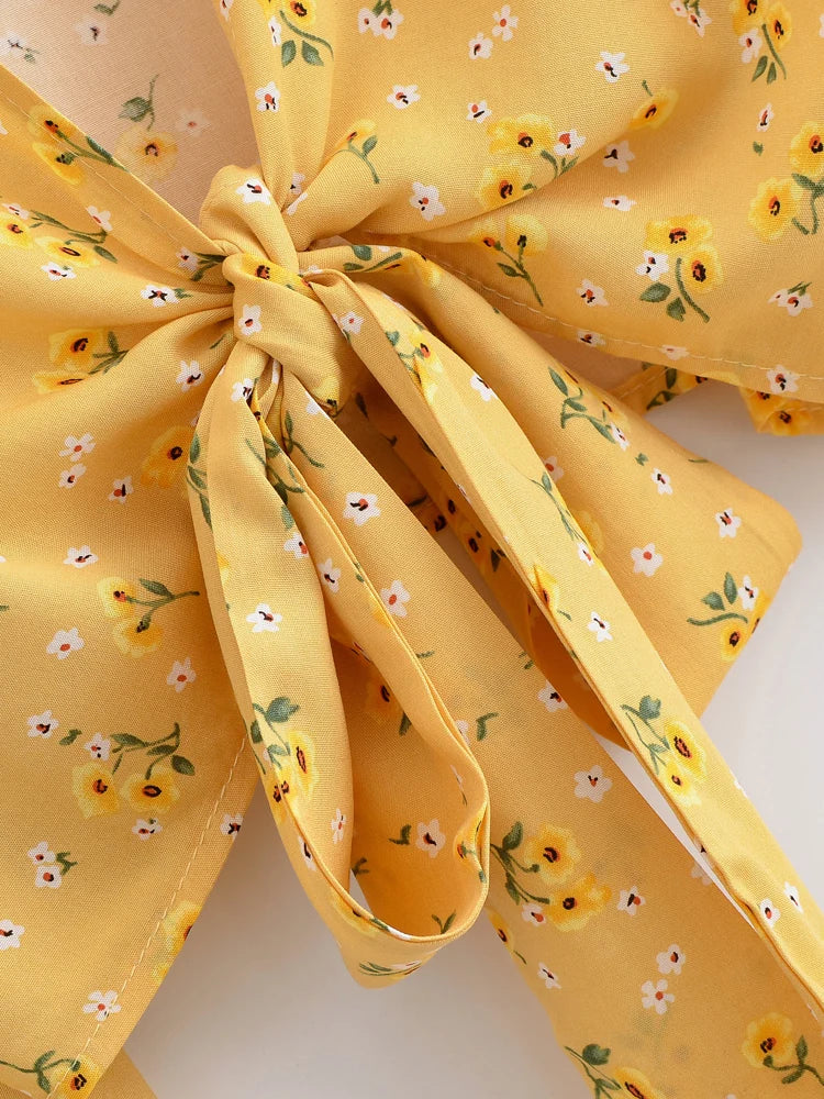 Buttercup Bloom Boho Floral Print Long Sleeve Crop Top