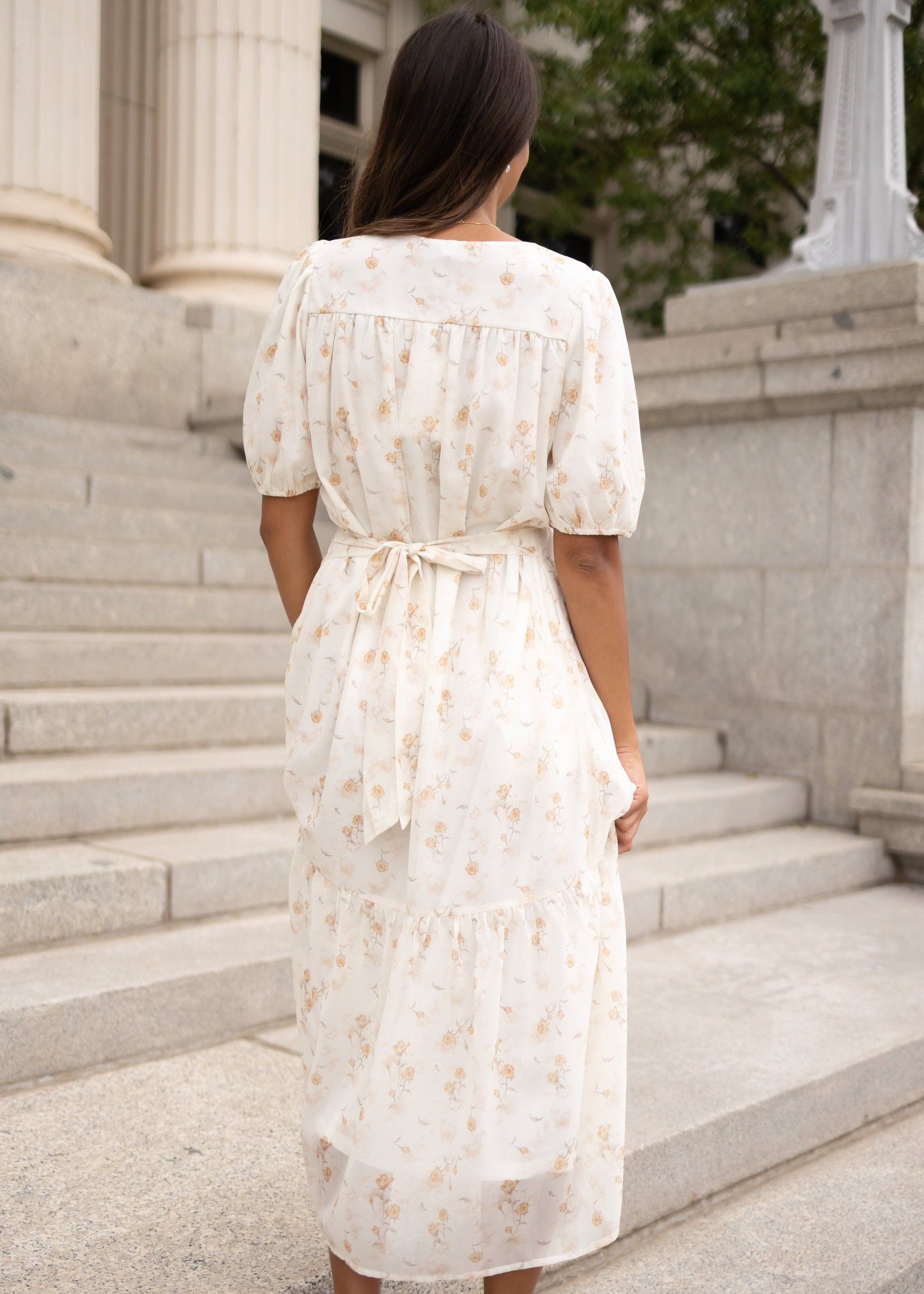 Cari Cream Floral Smocked Dress