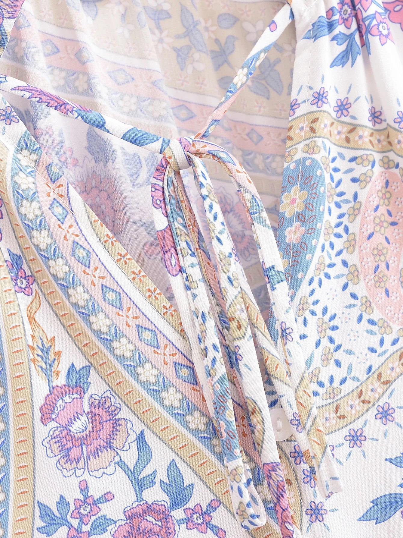 Lavender Daydream Boho Floral Print Long Sleeve Blouse