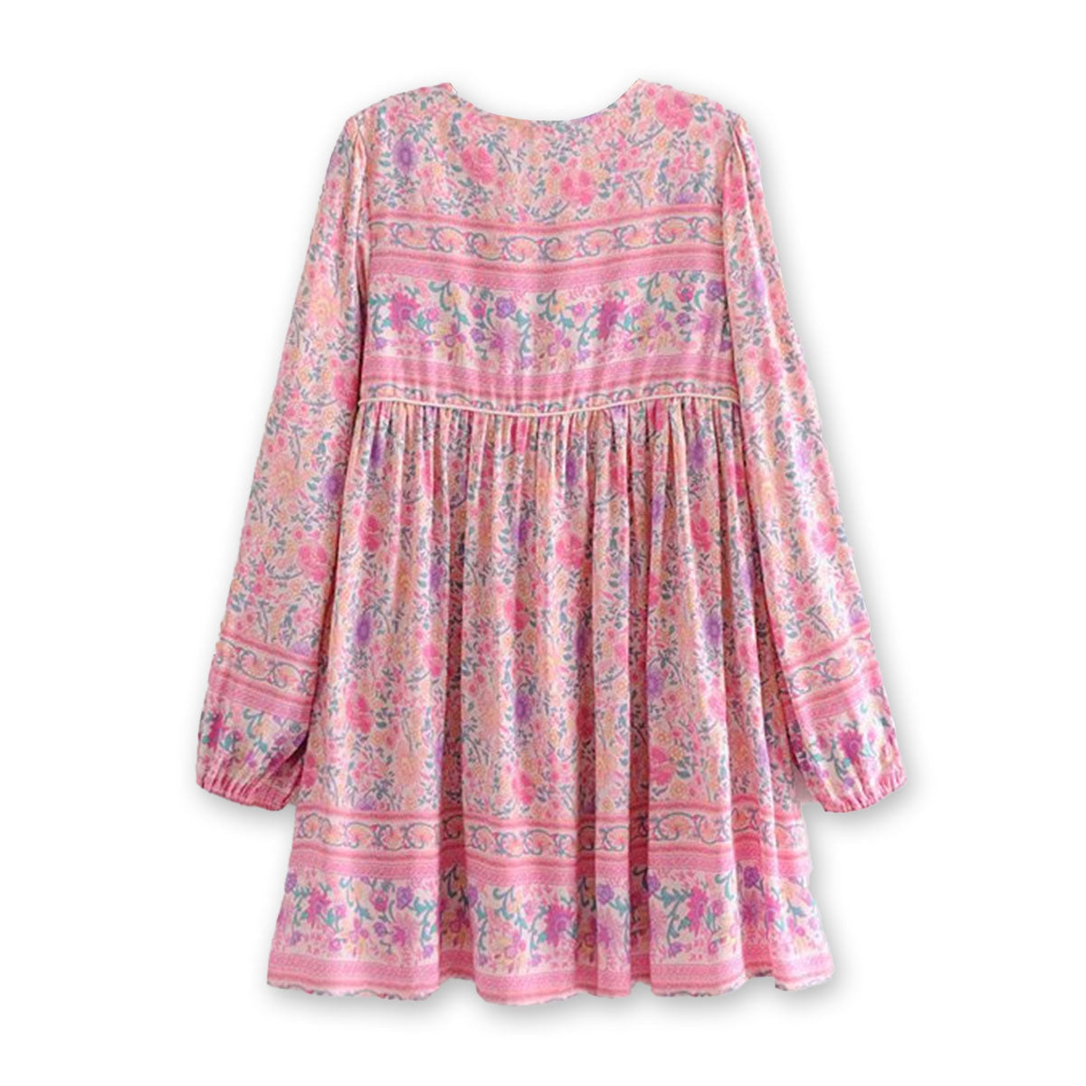 You are sure to feel like a Queen in this enchanting bohemian style Petal Pink Boho Floral Print Mini Dress. This bohemian dress is the perfect addition to your boho fashion collection.