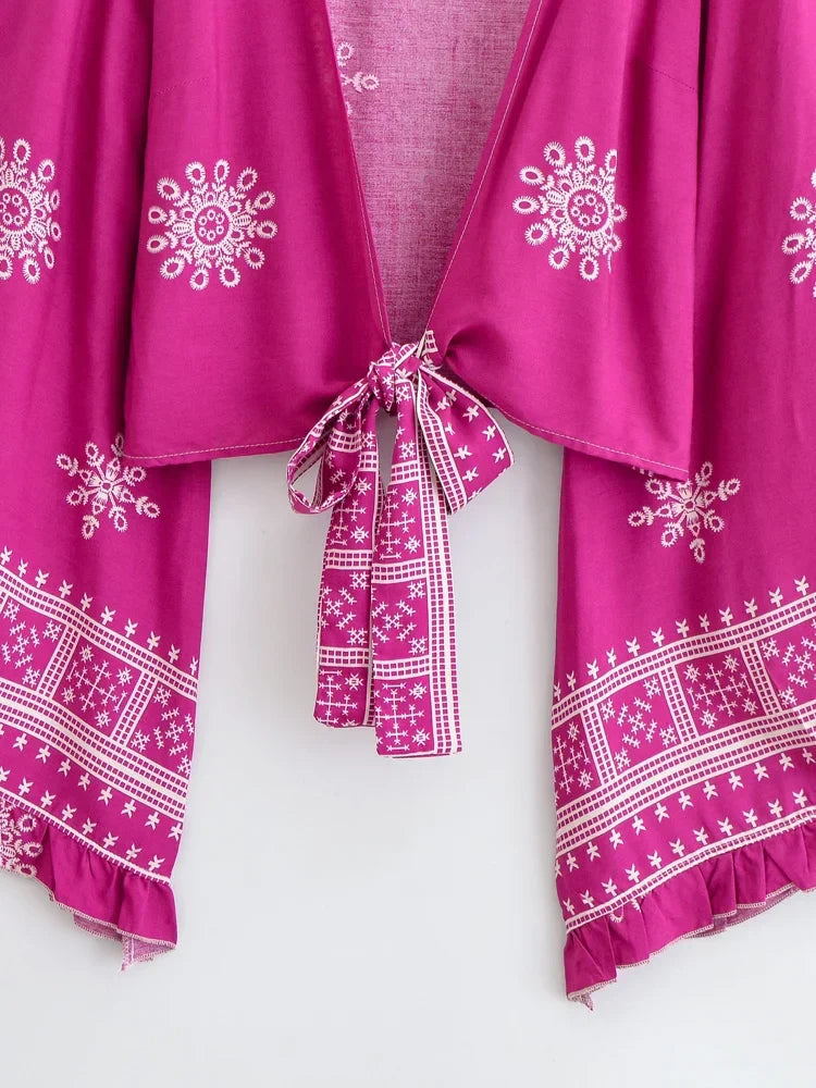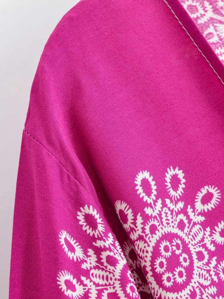 Feel like a queen in this enchanting bohemian-style blouse, designed to bring a carefree, free-spirited touch to your wardrobe.
