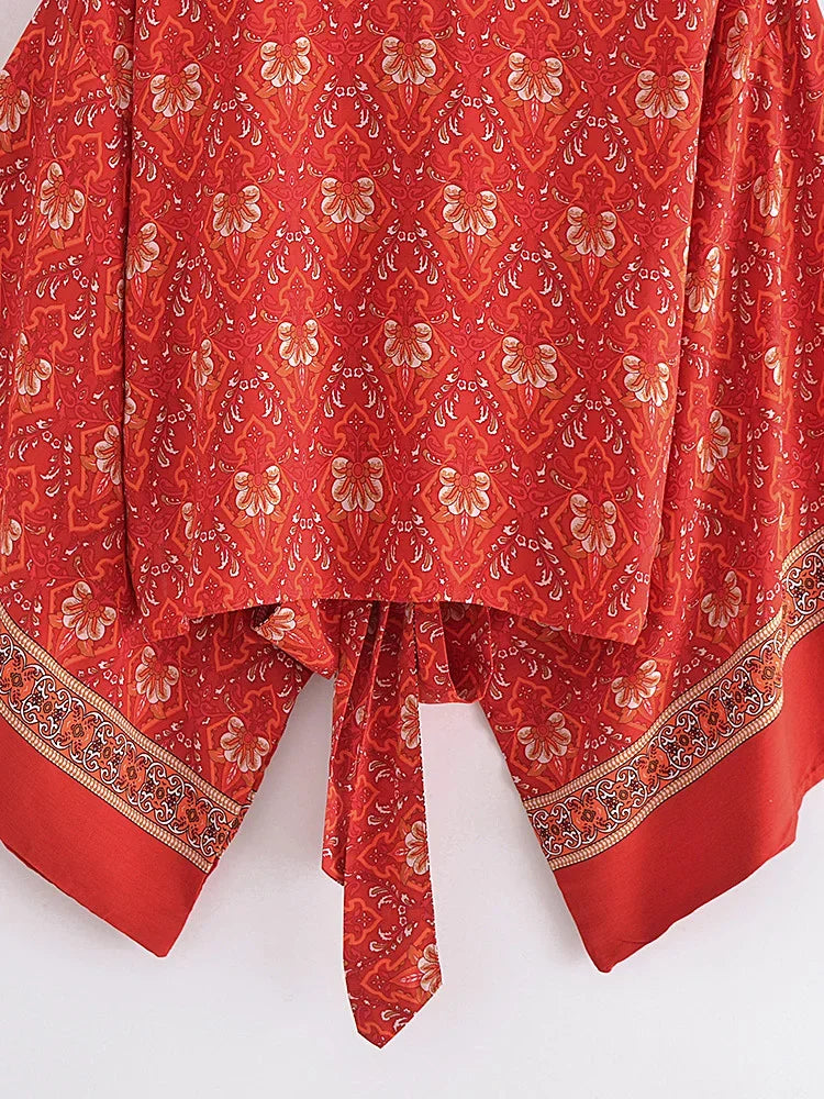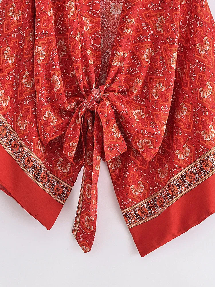 You are sure to feel like a Queen in this enchanting bohemian style Spiced Berry Boho Floral Print Crop Top that features a beautiful floral print.? This is a versatile piece that can be worn alone, over a tank top, bralette, camisole, or bikini top.