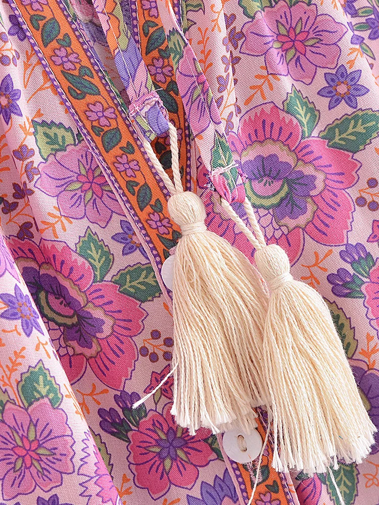 Pink Whisper Boho Floral Print Long Sleeve Blouse